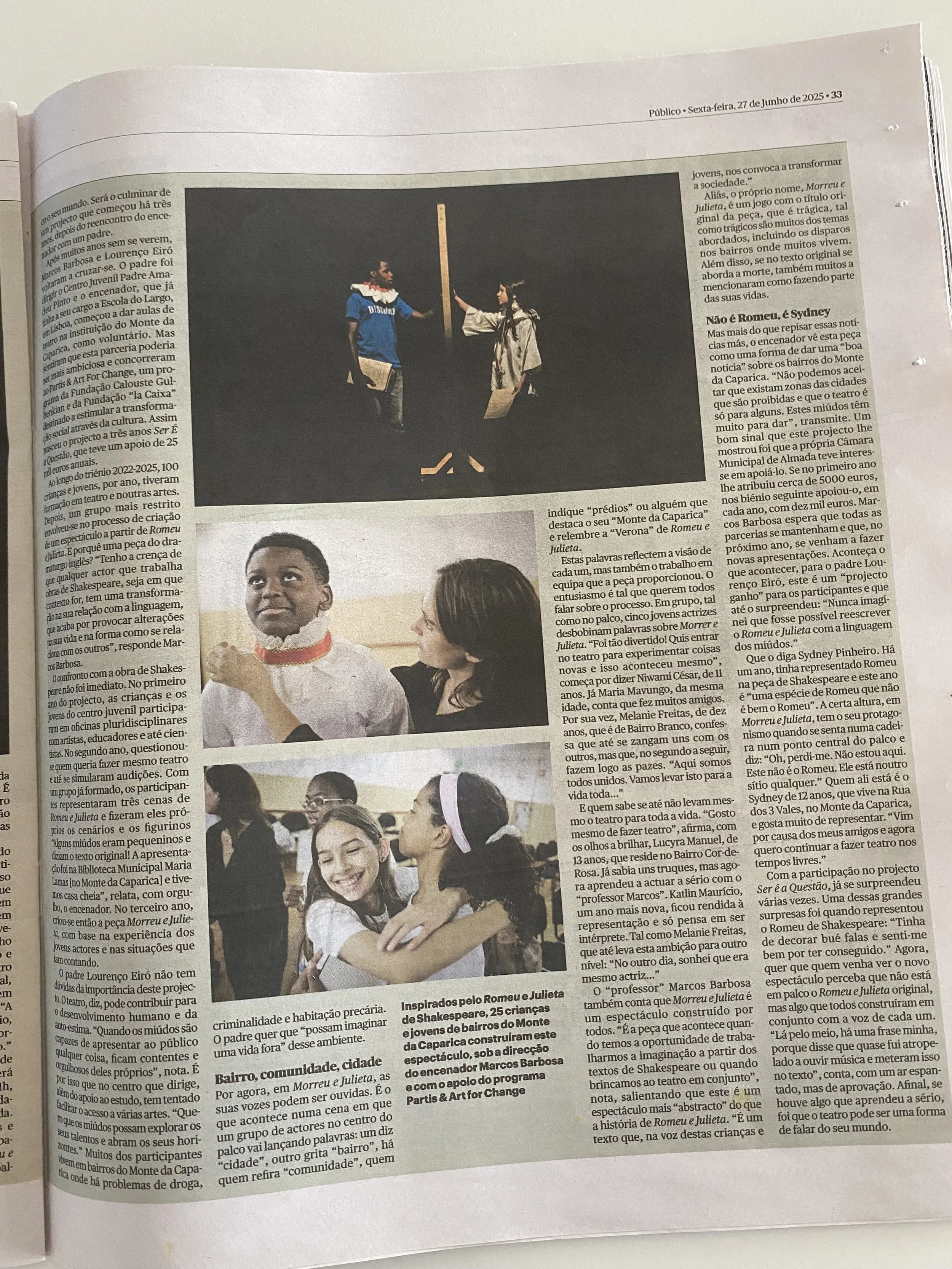 Em 2022 iniciámos um projeto artístico com a Fundação Calouste Gulbenkian e com a Escola do Largo. E, assim, durante estes três anos um grupo de crianças e jovens do Centro foi crescendo na arte de representar e apresenta agora ao público a sua peça de teatro final.